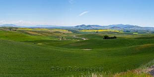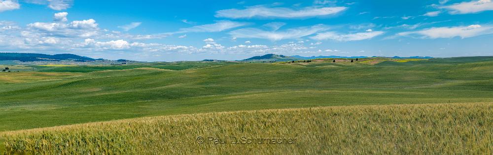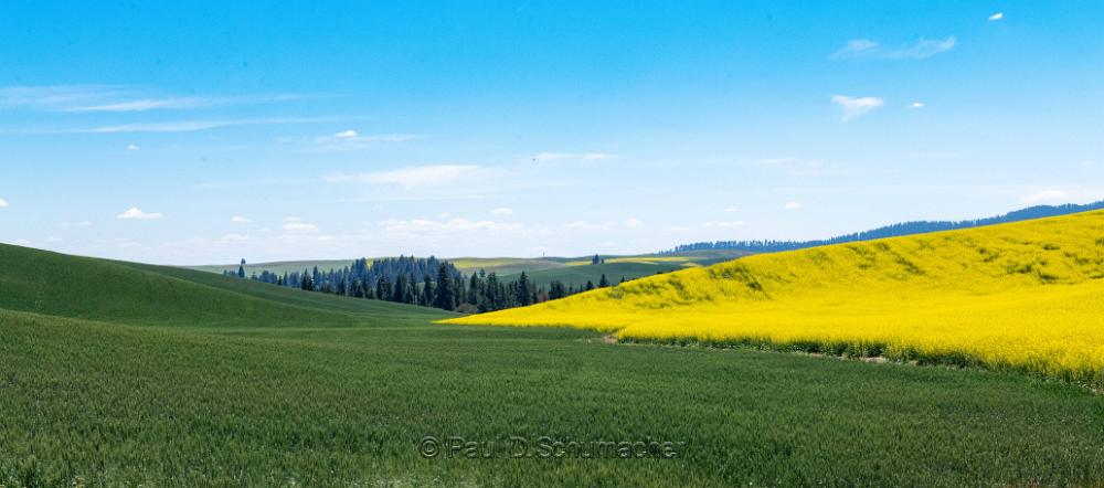 The Palouse is an extensive area in Eastern Washington-Western Idaho that consists of rolling hills whose topsoil can be as deep as 15 feet. It is planted in wheat and canola. As these crops ripen the wheat turns golden brown and the canola turns yellow.